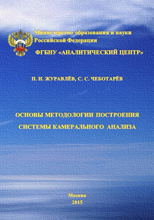 Год публикации: 2015 Журавлёв П. Н. Основы методологии построения системы камерального анализаМонография / П. Н. Журавлёв, С. С. Чеботарёв. – М.: ФГБНУ «Аналитический центр» Минобрнауки России, 2015. – 64 с.(ISBN 978-5-904670-28-3).