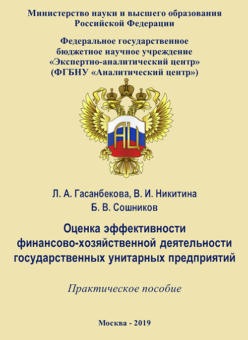 Год публикации: 2019 Гасанбекова Л. А. Оценка эффективности финансово-хозяйственной деятельности государственных унитарных предприятийПрактическое пособие / Л. А. Гасанбекова, В. И. Никитина, Б. В. Сошников; под общ. науч. ред. канд. экон. наук О. А. Коробко. – М.: ФГБНУ «Аналитический центр» Минобрнауки России, 2019. – 49 с. (ISBN 978-5-904670-54-2).