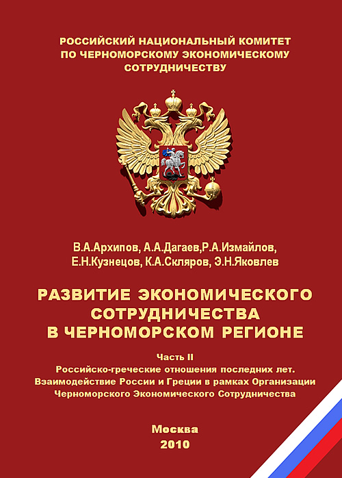 Год публикации: 2010 Архипов В. А. Развитие экономического сотрудничества в Черноморском регионе. Часть II. Российско-греческие отношения последних лет. Взаимодействие России и Греции в рамках Организации Черноморского Экономического СотрудничестваНаучно-публицистическая монография [РНК ЧЭС]. / В. А. Архипов, А. А. Дагаев, Р. А. Измайлов, Е. Н. Кузнецов, К. А. Скляров, Э. Н. Яковлев; под общ. ред. д-ра экон. наук, проф. Э. Н. Яковлева. – М.: Государственное научное учреждение «Экспертно-аналитический центр», 2010. – 159 с. (ISBN 978-5-904670-06-1).